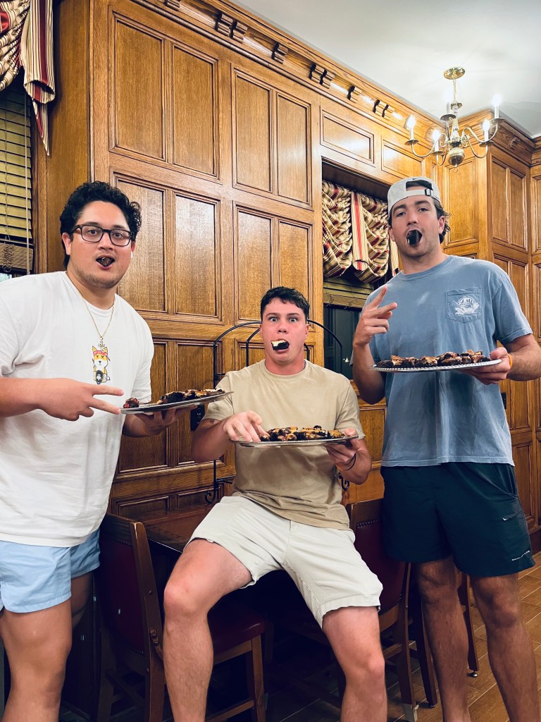 Some of our football boys devouring Bill’s special brownies…it’s bulking season!!!!