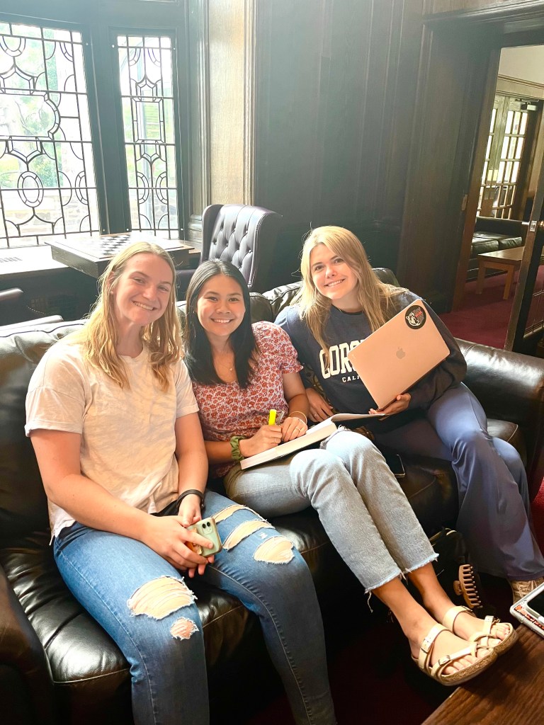 Members Alexis, Emily, and Jen studying during the day!