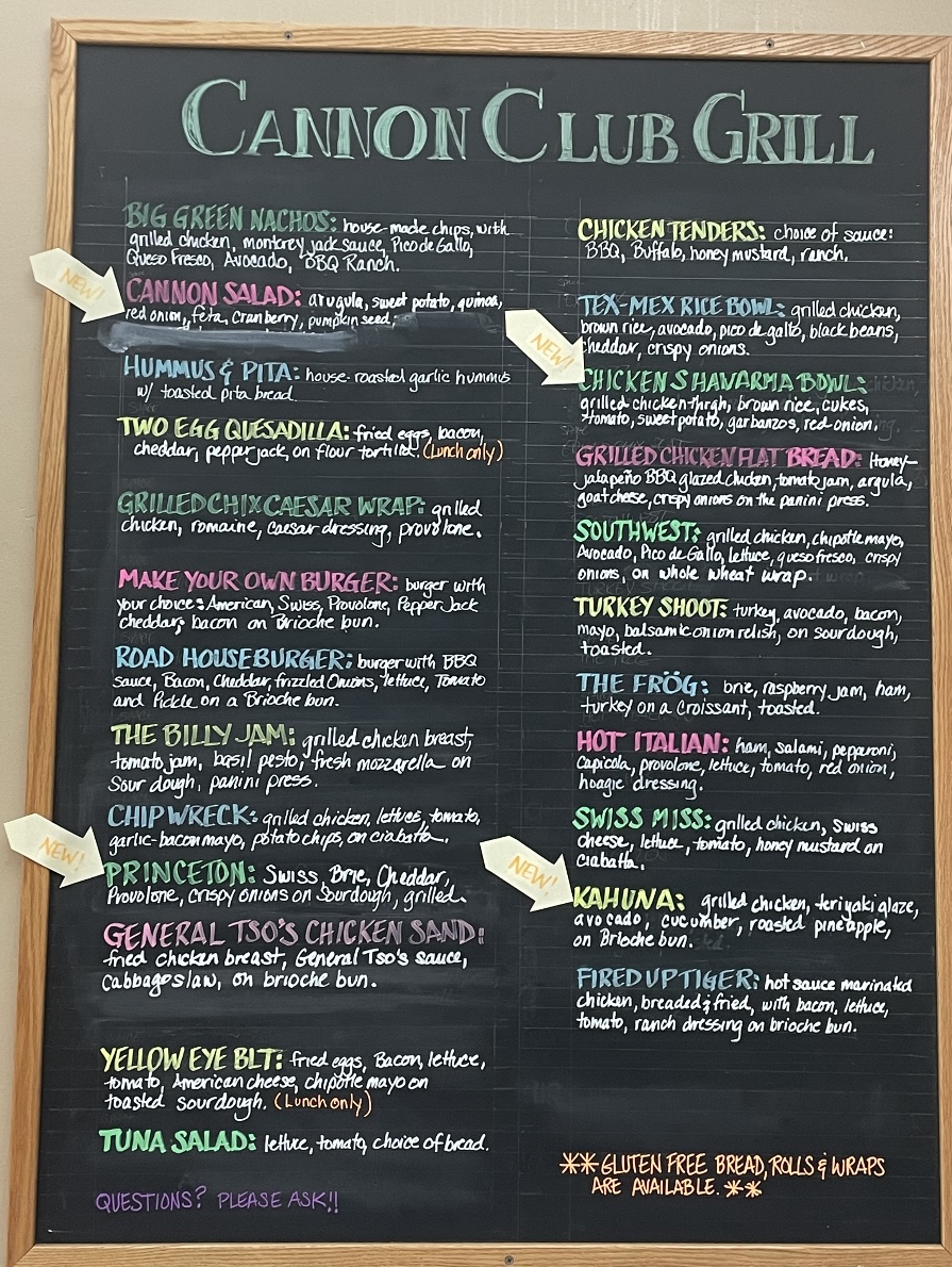 The last items on my agenda are twofold. Firstly, because this club truly revolves around food, I thought I would share the newest Cannon menu with everyone, as it is incredible and Bill has worked so hard to curate it perfectly. My personal favorites are the Chicken Shawarma Bowl and the Princeton, which is the best grilled cheese I’ve had in a long time! Lastly, this photo of Bill and Adell is just too good not to share.