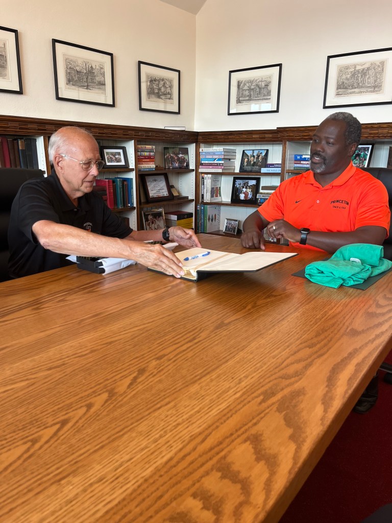 In other Athletics news… Cannon was proud to induct Athletics Director, John Mack, as an honorary Cannon member. It only seems right that the man in charge of athletics is also a part of the club that hosts the majority of them at Princeton. Chuck Freyer, Avery Shunneson, and myself were able to sit down with John, present him with his CDE tie and sign his name into the member book. He was thrilled to be a part of the place that nourishes and stands as a home to so many of his athletes.