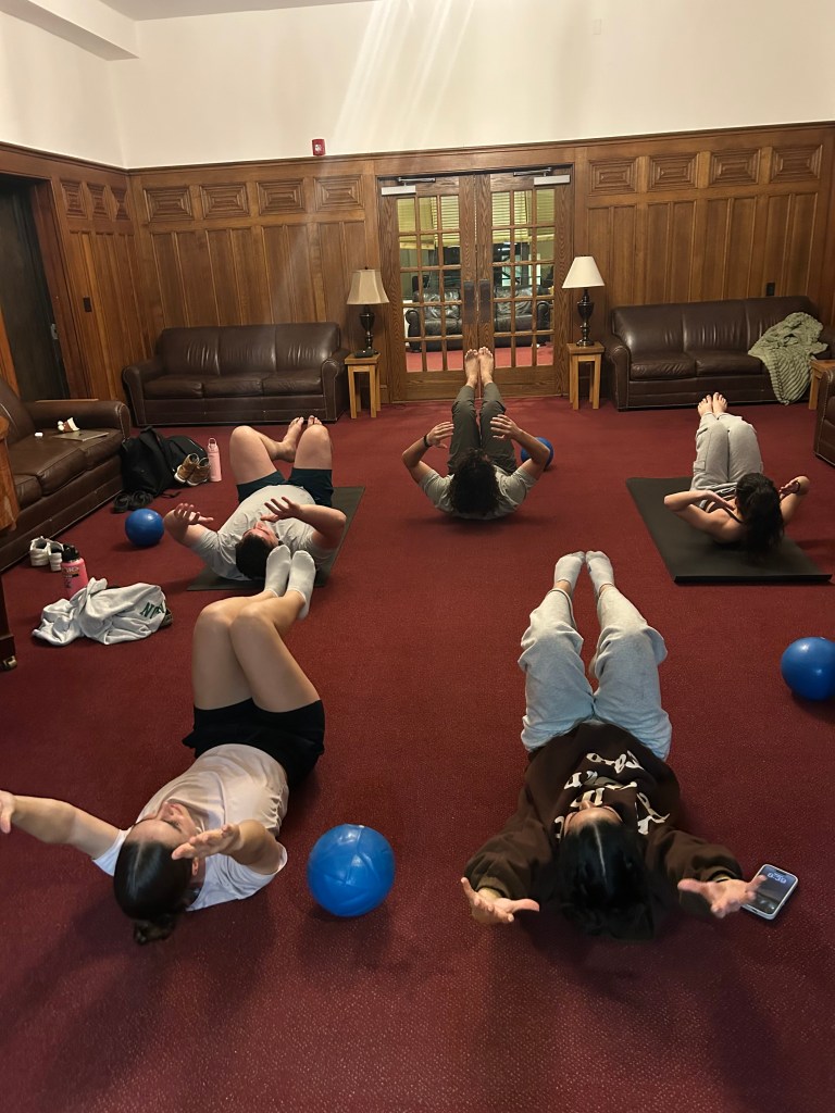 Led by our new Vice President, Jay Mentink ’27, Cannon’s weekly yoga and pilates sessions are quickly becoming a club favorite. For the amount of work our members are putting in on and off the field, they have loved having a space to reset during the week. Jay keeps it light, engaging, and accessible for everyone, so no matter their experience level, they’ll leave feeling looser, stronger, and in a better headspace. Scott Becker ’26 says he will be able to do a headstand by Reunions, guess we’ll have to wait and see!